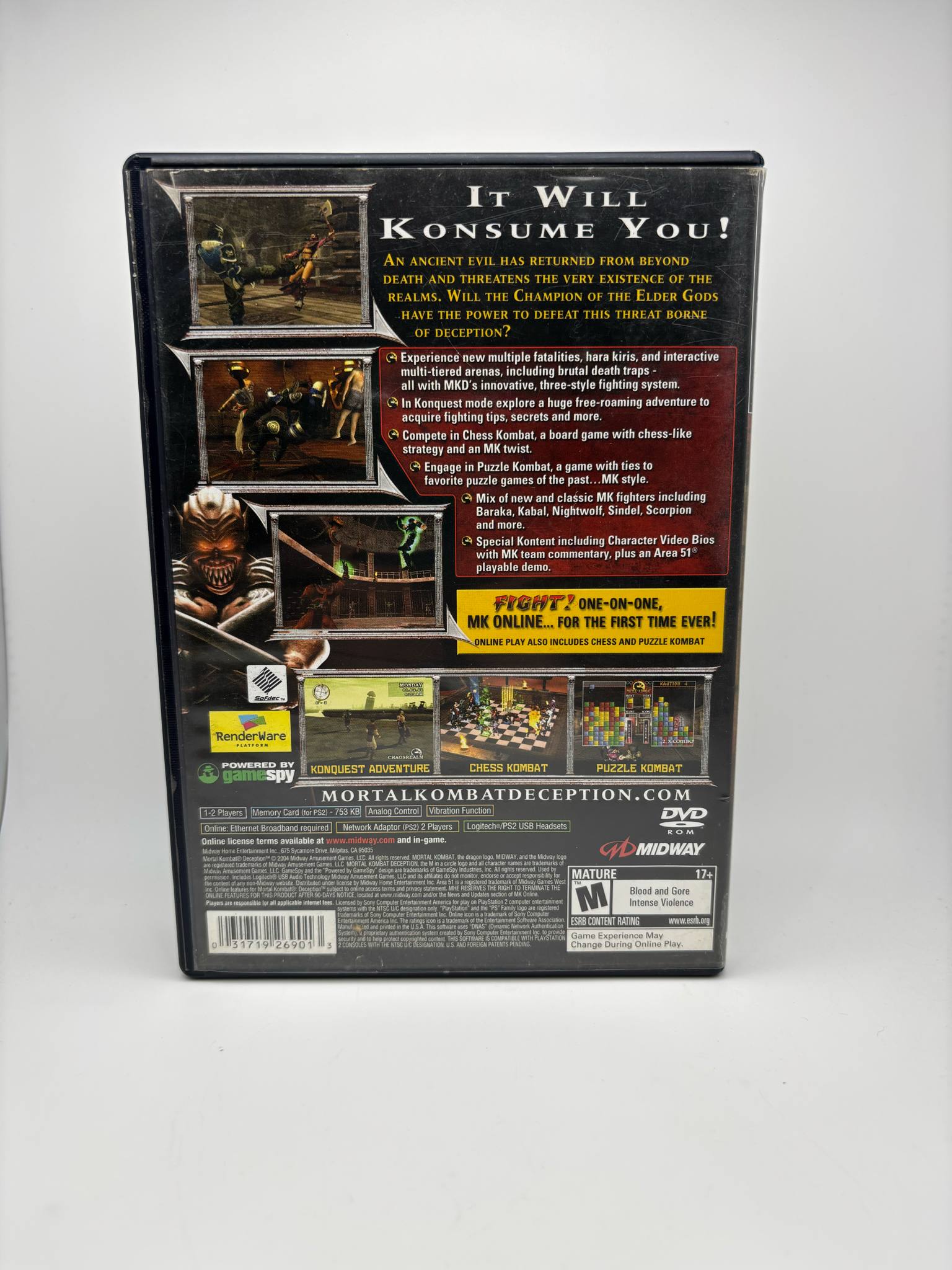 A 2004 fighting game developed and published by Midway. It is the sixth main installment in the Mortal Kombat franchise and a sequel to 2002's Mortal Kombat: Deadly Alliance.
