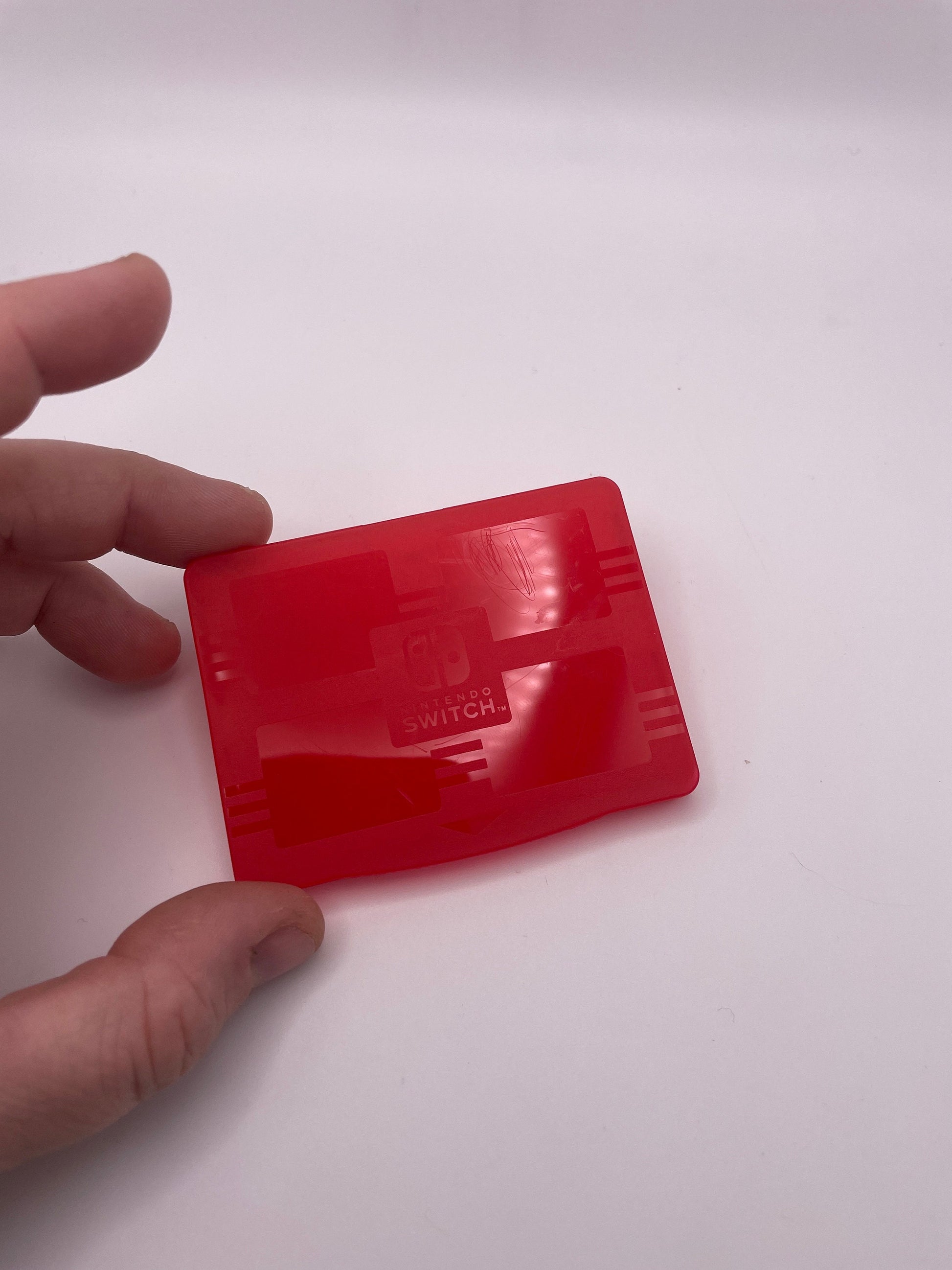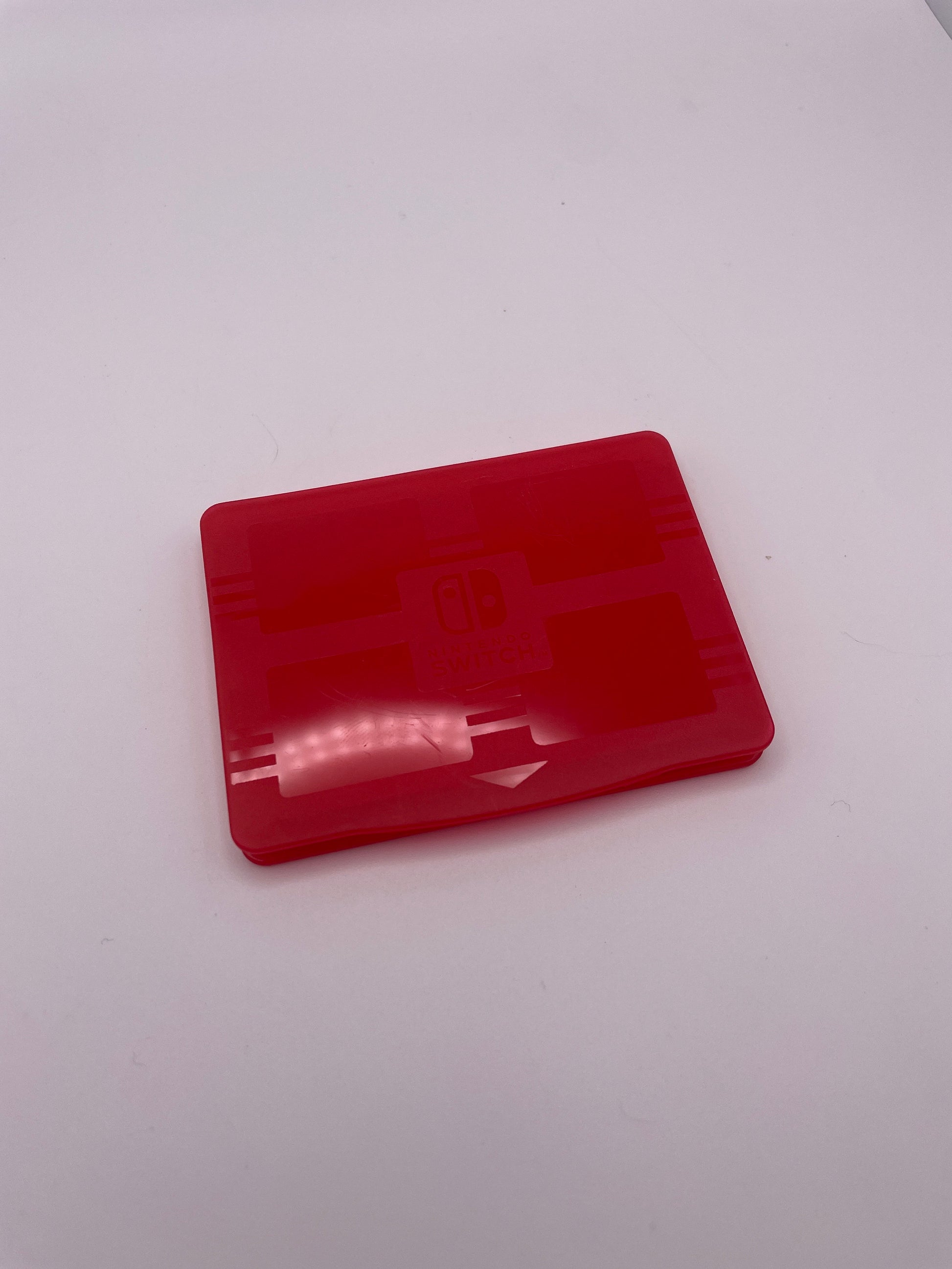 This is a licensed Nintendo Switch brand plastic clamshell that can hold up to four Nintendo Switch cartridges. Good quality and in good condition with some scratches on the plastic. Closes tight to protect your loose copies of games from wear, getting lost or water damage. The game in photo is not included.